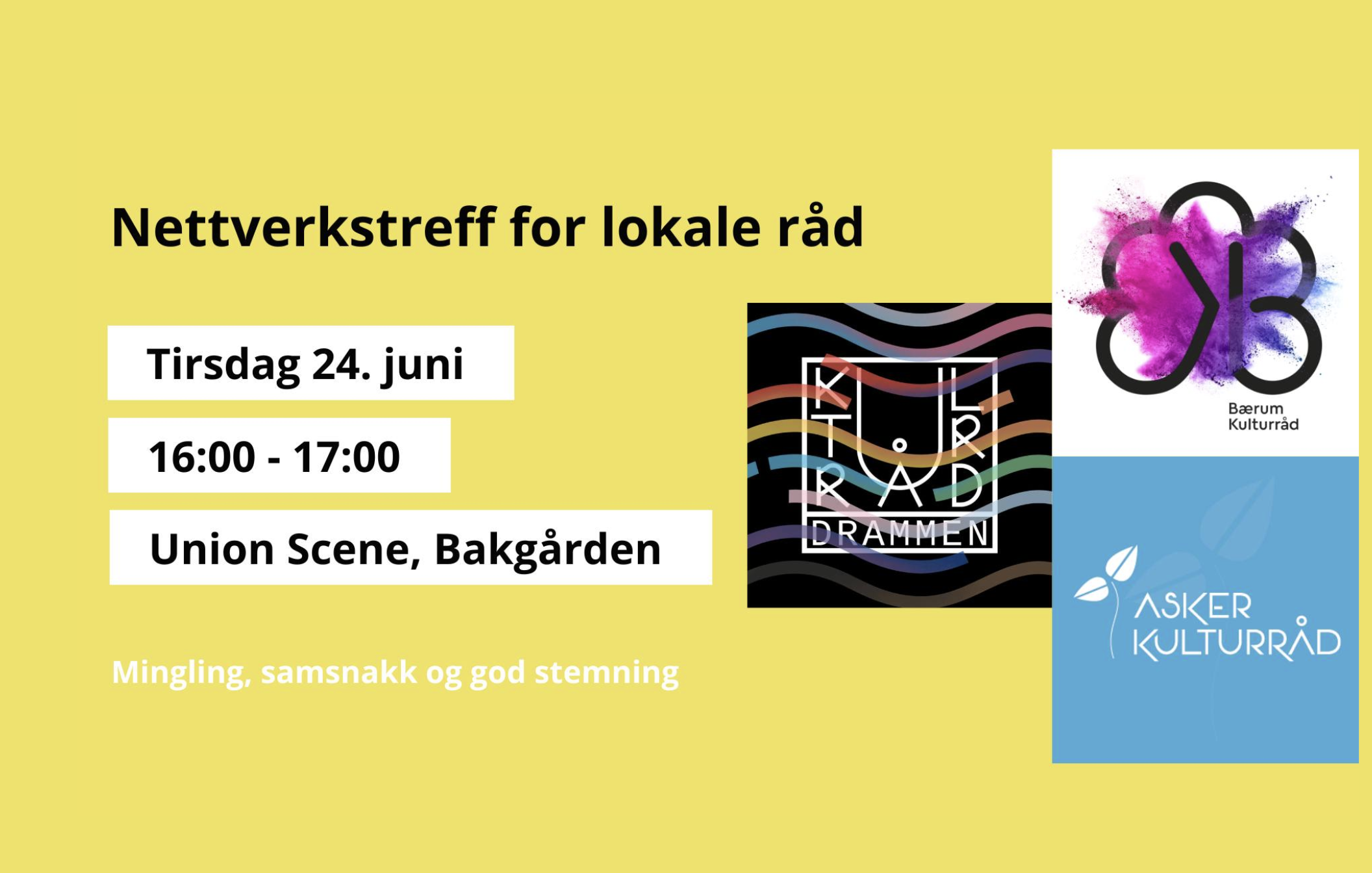 I forbindelse med Kulturytring 2025 benytter vi anledningen til å invitere til nettverkstreff for lokale musikk- og kulturråd. Treffet er i forlengelse av vår programpost i hovedprogrammet på Kulturytring, og er fra kl. 16:00 – 17:00 i Bakgården på Union Scene. Vi byr på noe godt i glasset, mingling, samsnakk og generell god stemning. Håper du tar turen innom – ses i Drammen!